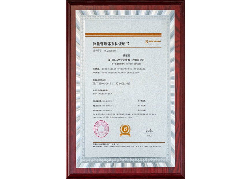 质量管理体系认证证书