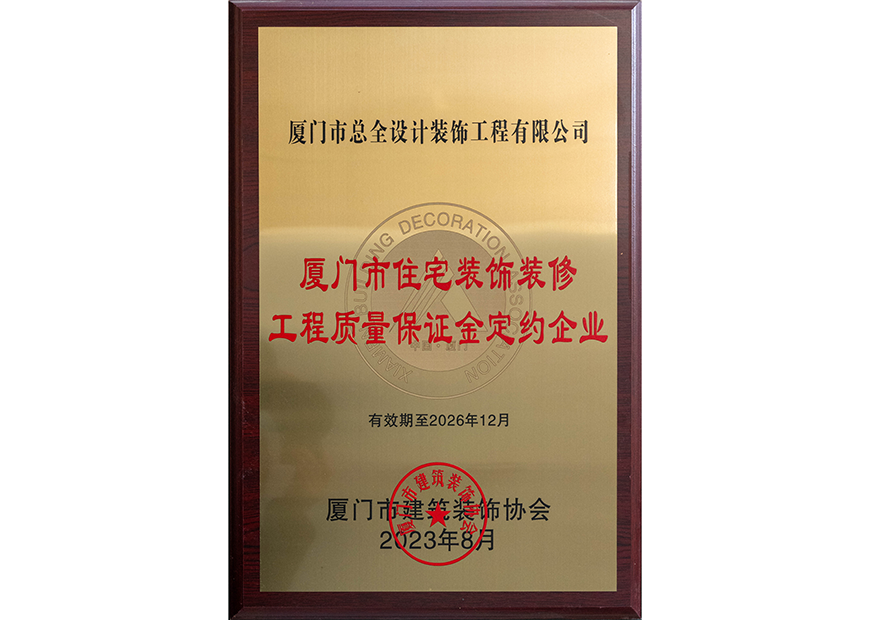 厦门市住宅装饰装修工程质量保证金定约企业