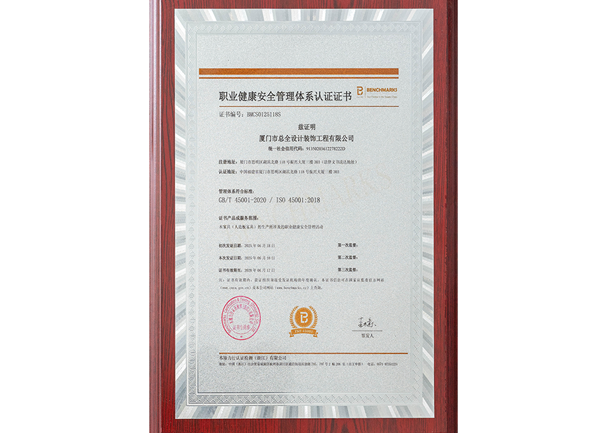 职业健康安全管理体系认证证书