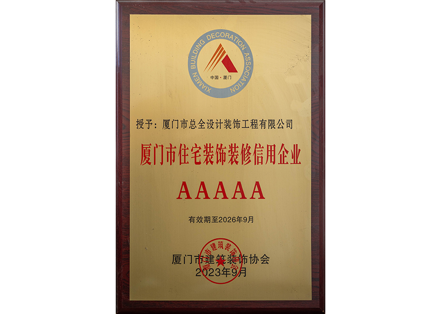 厦门市住宅装饰装修信用企业AAAAA