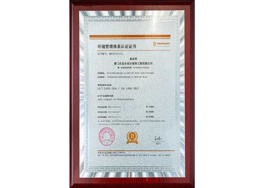 环境管理体系认证证书